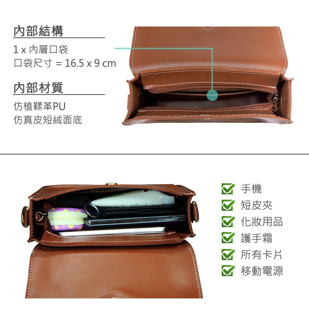 包包側邊和底部的用料都有經過雙層車縫加強,內容物安全不怕外部撞擊! 內部空間可放下一般常用物品,也可以稍稍勉強放進一個女用長皮夾。