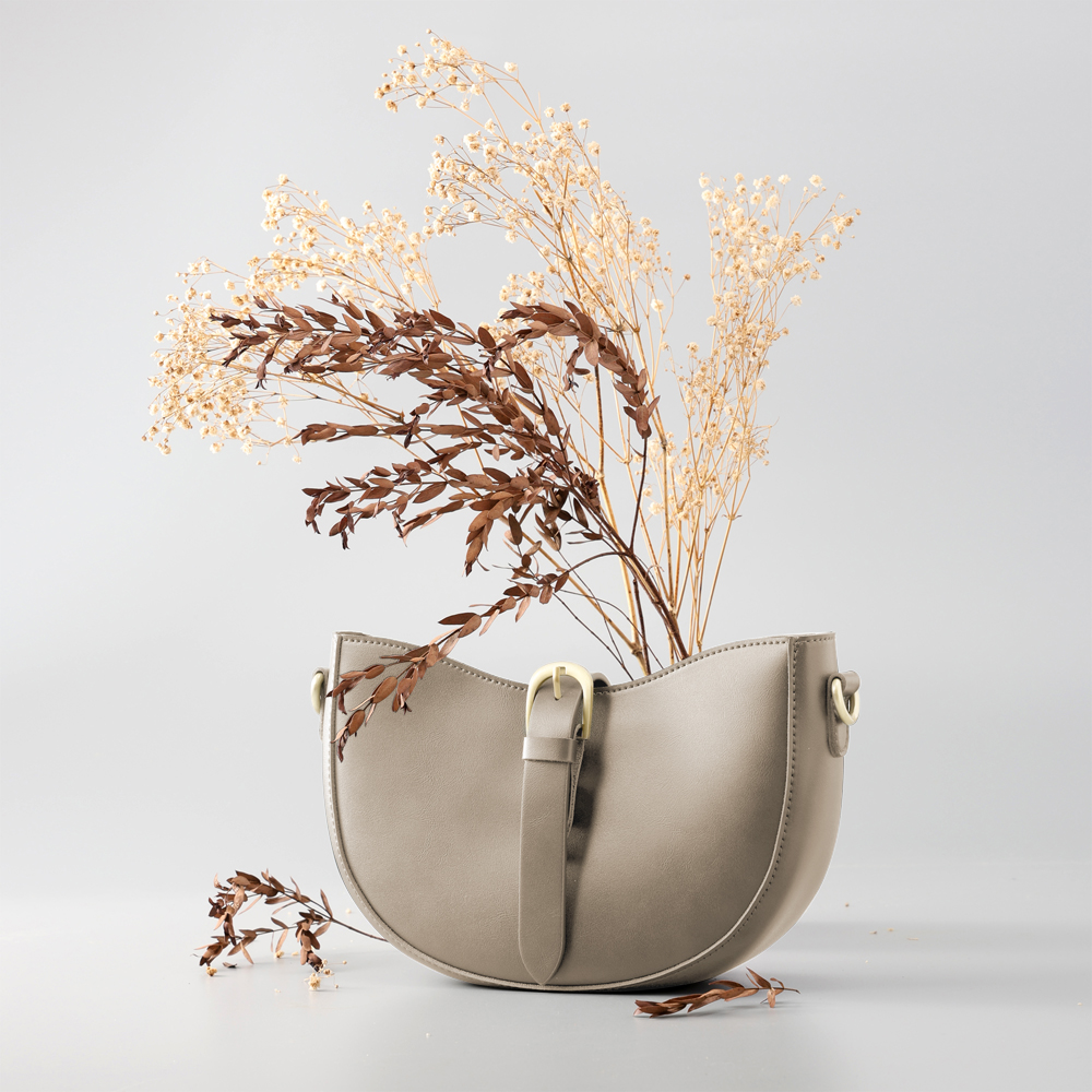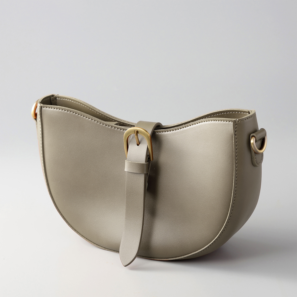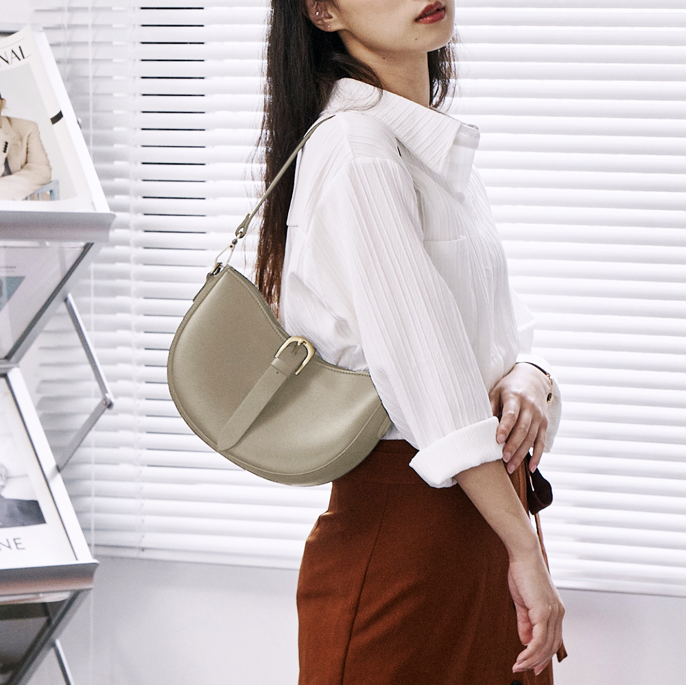 優雅的半月包伴隨著率性的長版型皮帶釦