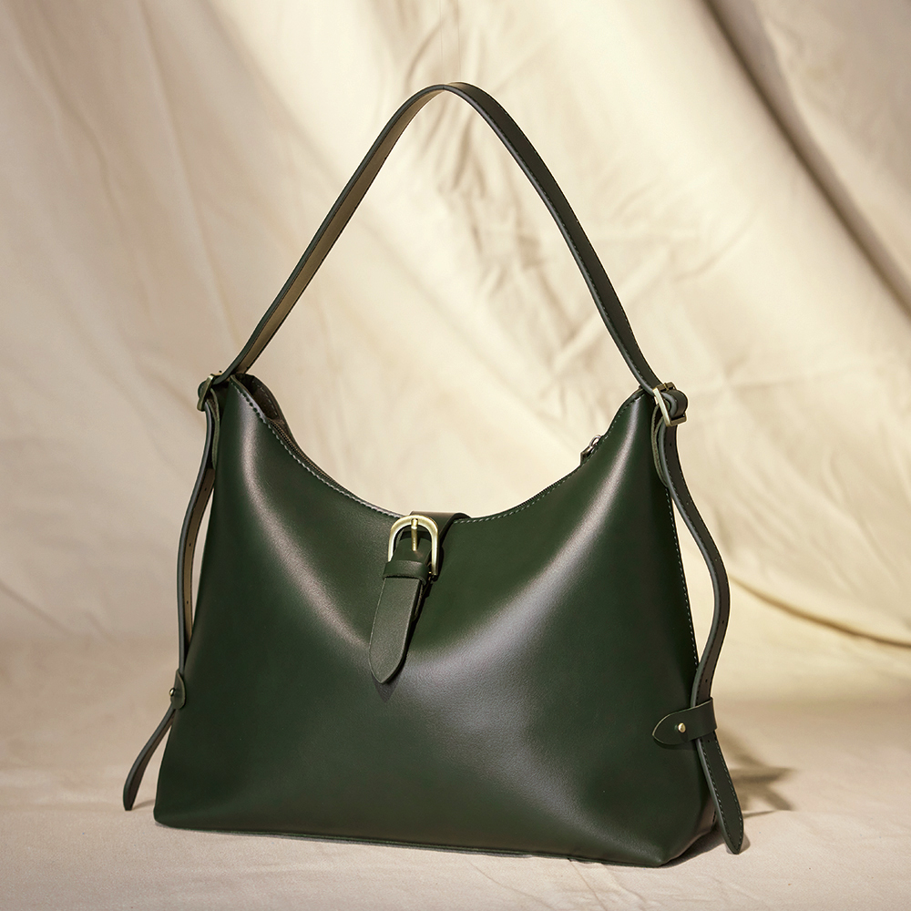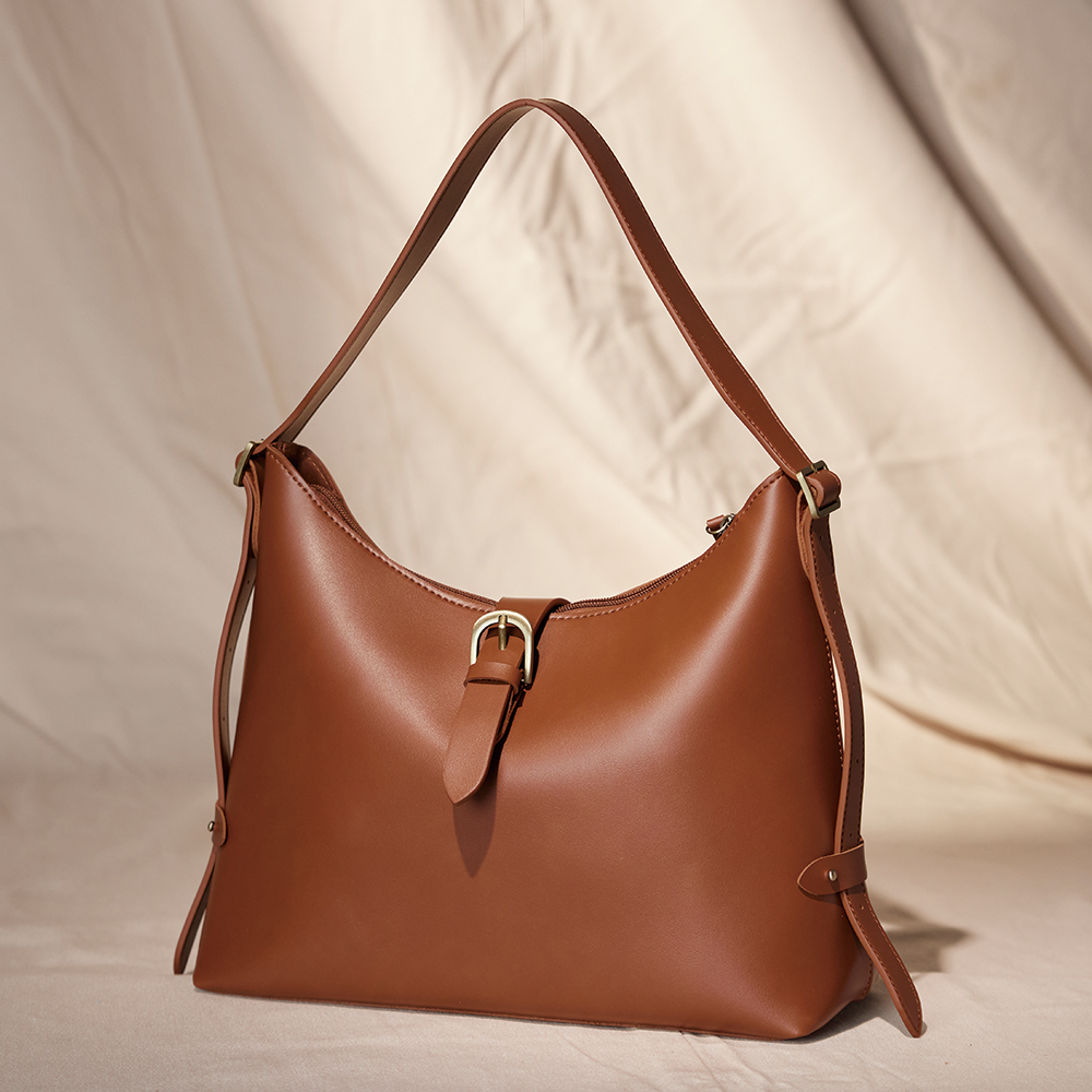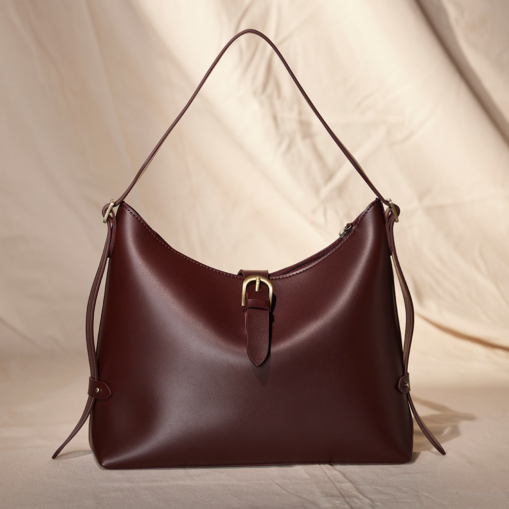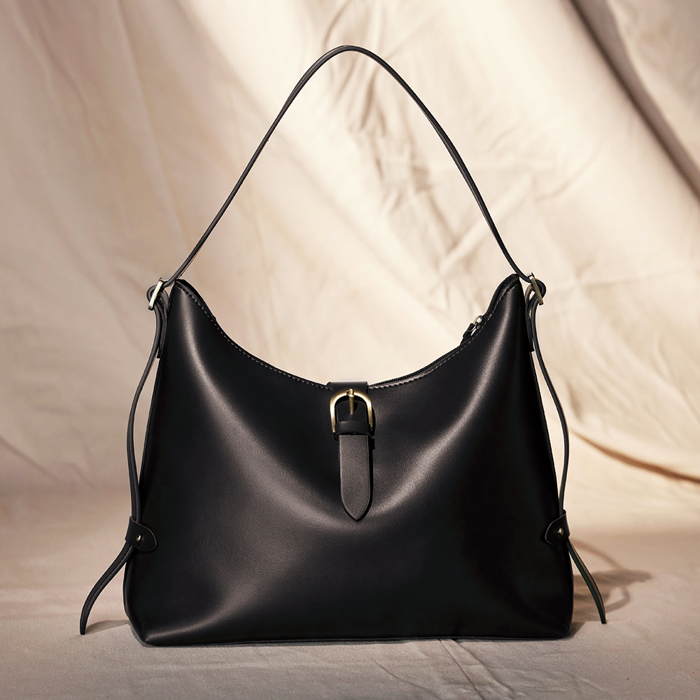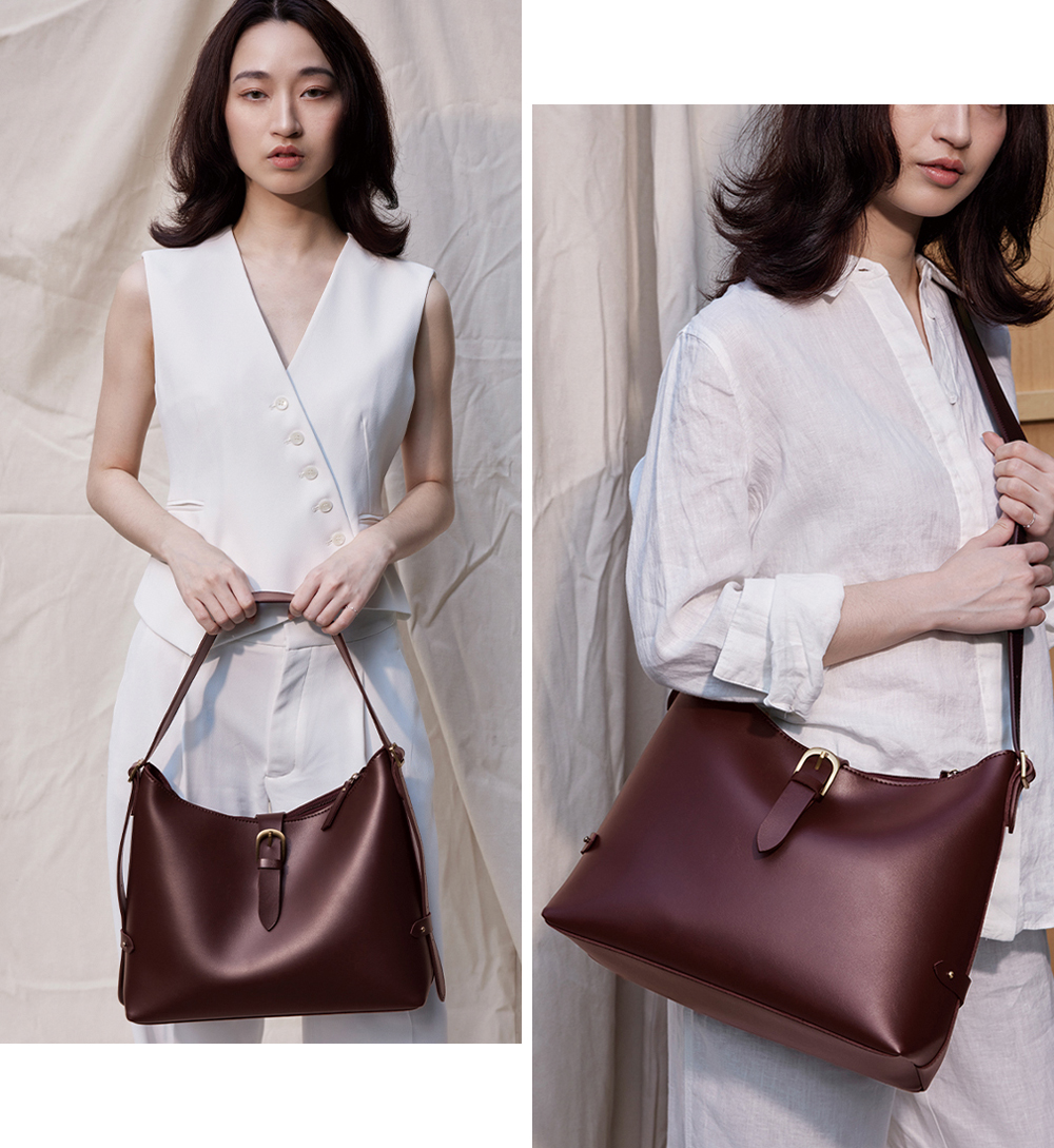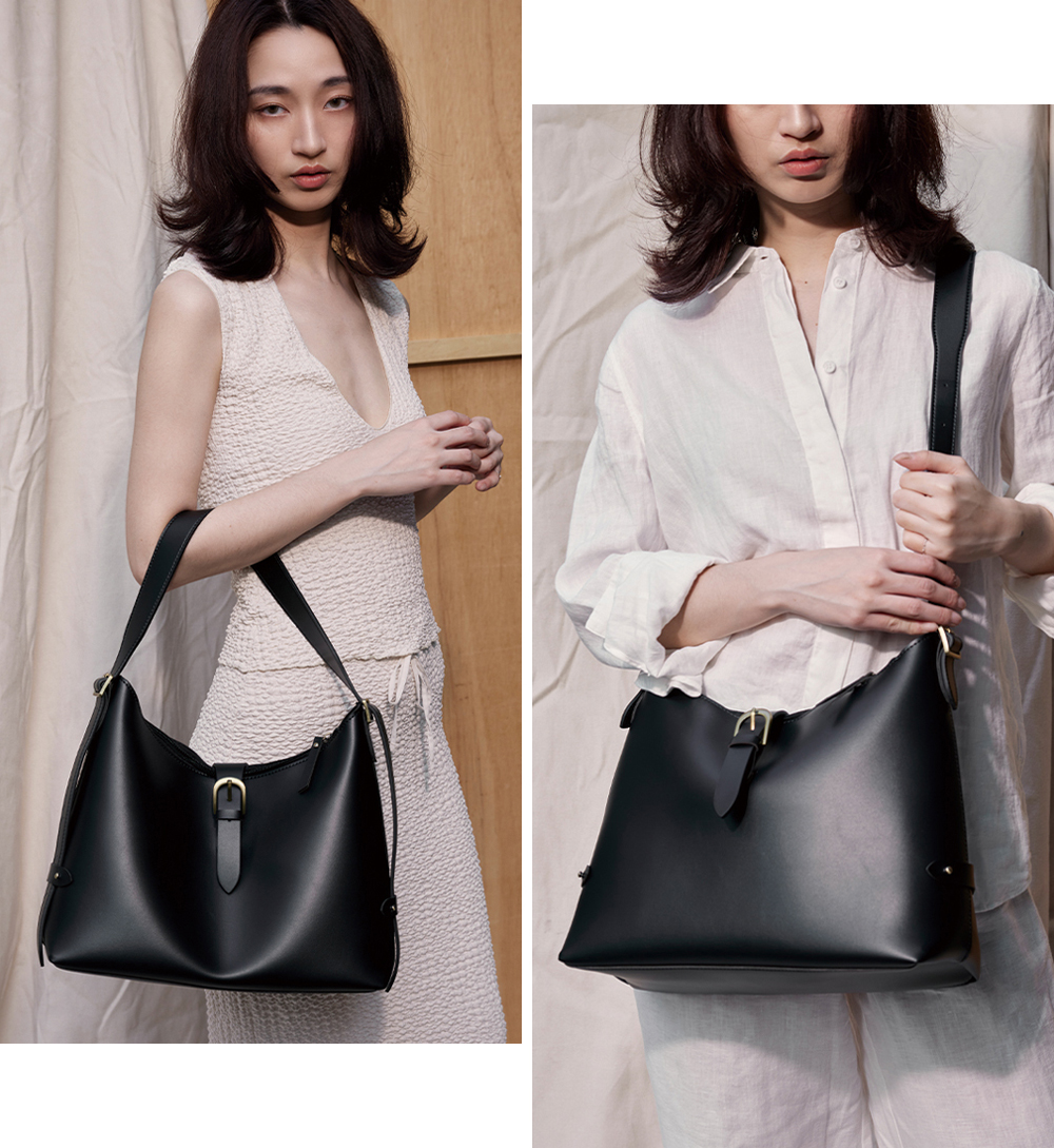 ✦ 開口設計:復古皮帶釦 + 質感拉鍊