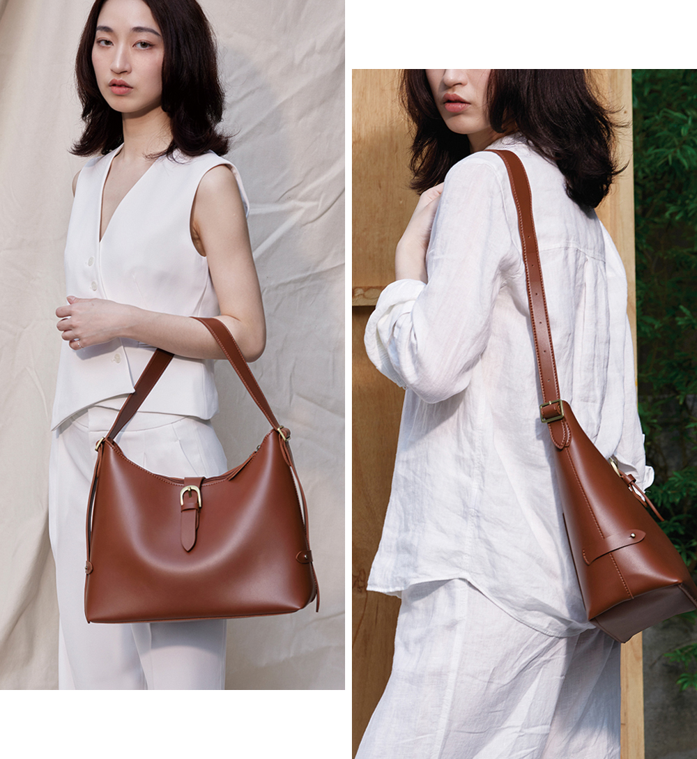 ✦ 包包底部採用雙層皮革精緻車縫設計,保護內容物免受外部衝擊