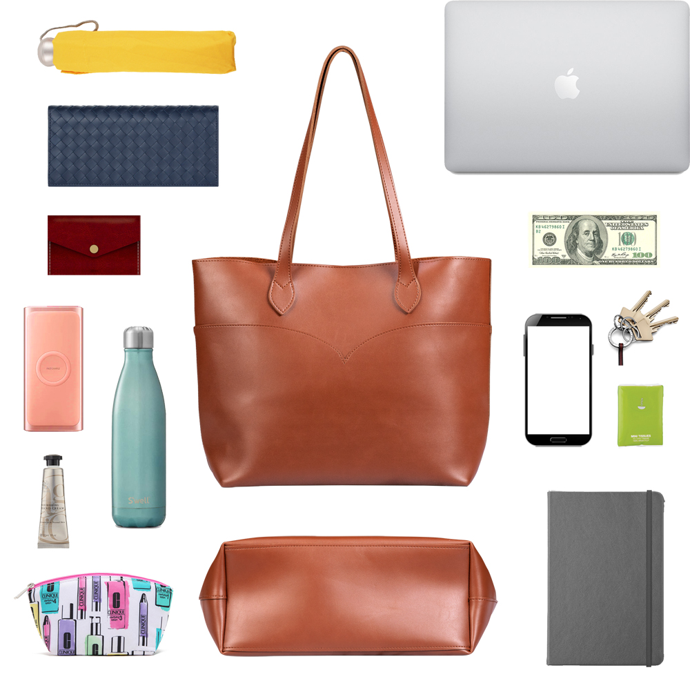 內置拉鏈袋,寬大的空間可輕易放進一般女用長夾,讓妳的長皮夾在托特包內多一層保護!